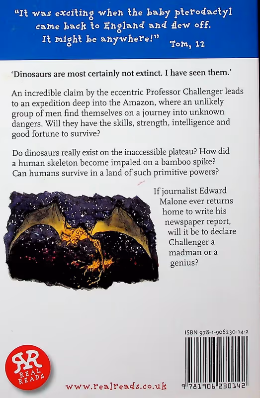 ‘Dinosaurs are most certainly not extinct. I have seen them.’ An incredible claim by the eccentric Professor Challenger leads to an expedition deep into the Amazon, where an unlikely group of men find themselves on a journey into unknown dangers. Will they have the skills, strength, intelligence and good fortune to survive? Do dinosaurs really exist on the inaccessible plateau? How did a human skeleton become impaled on a bamboo spike? Can humans survive in a land of such primitive powers? If journalist Edward Malone ever returns home to write his newspaper report, will it be to declare Challenger a madman or a genius? Real Reads are retellings of the classics of world literature, each fitted into a 64-page book. Our books make classic stories, dramas and histories available to young readers as a bridge to the full texts, to reluctant readers as a gentle introduction to a world of wonderful literature, to language students wanting access to other cultures, and to adult readers who are unlikely ever to read the original versions, or simply don’t have time to!